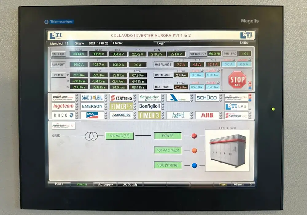 Un operatore specializzato, diverso dal tecnico riparatore, provvede a collegare l’inverter ad un banco test che simula le condizioni operative di un impianto fotovoltaico, spingendo l’apparecchiatura al suo massimo rendimento (anche fino a 24h). Successivamente si procede con una serie di stress-test per assicurarsi che tutti i parametri siano conformi agli standard previsti. In caso di rilevazione di ulteriori problemi, l’apparecchiatura viene rinviata al Laboratorio per le necessarie correzioni.